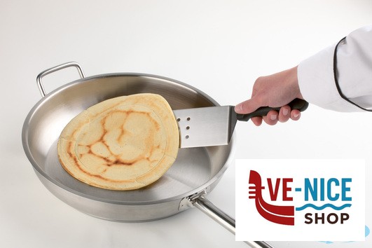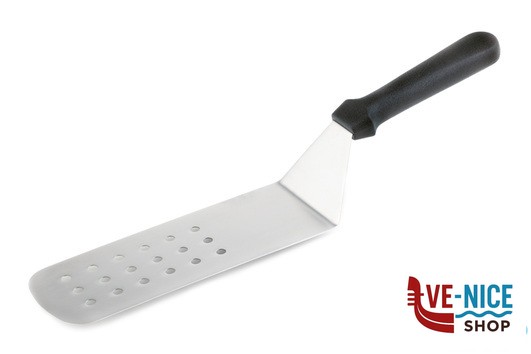 BLUE-SPATOLA HAMBURGER FORATA FLESSIBILE CM.24,5X7,5 LUNGHEZZA TOT. CM.37,5 LAMA IN ACCIAIO INOX, MANICO POLIPROPILENE NERO ANTISCIVOLO 88940