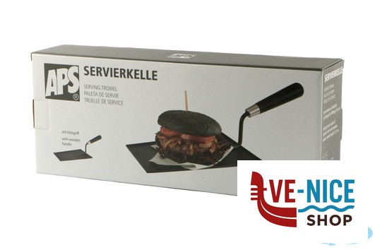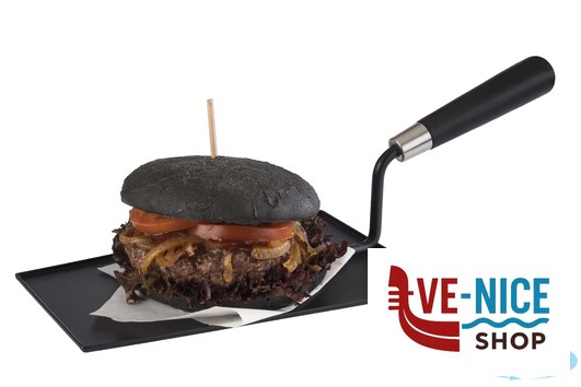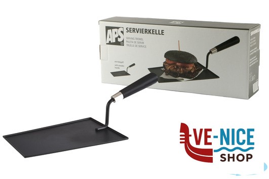BOB-PALETTA DA SERVIZIO FORMA CAZZUOLA NERO CON MANICO LEGNO. MIS. PIATTO CM.23,5X15,5 MIS. TOT CM.37X15,5 H 12,5 40681