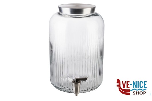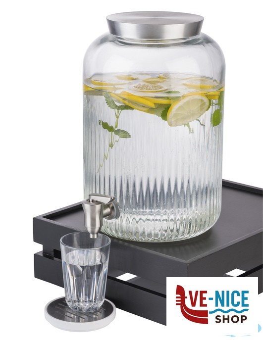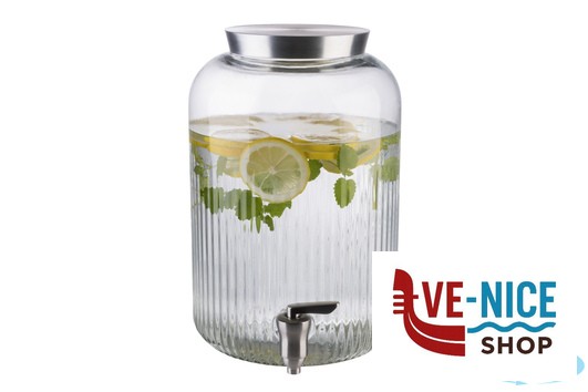 BUFFET-DISTRIBUTORE PER BEVANDE CM20XH.30,5 IN VETRO 7 LITRI, CON COPERCHIO E RUBINETTO IN ACCIAIO INOX 10855