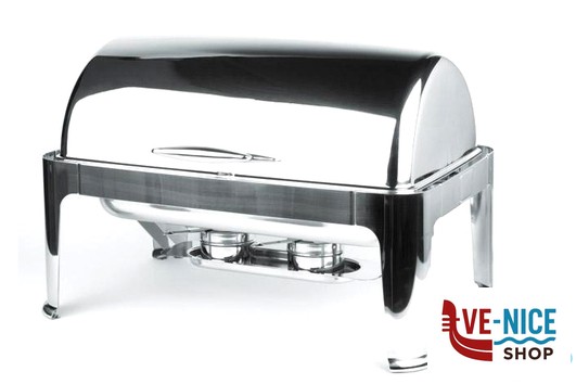 CHAFING DISH ROLLTOP .IN ACCIAIO LUCIDO MISURA 67X47 H 45 LT 9 12350 COPERCHIO ROLL TOP DA 90ᄚA 180ᄚ BAC GN 11 H 65 2 SUPPORTI BRUCIATORI