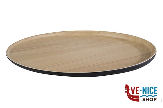 FRIDA-VASSOIO MELAMINA CON ANTISCIVOLO EFFETTO LEGNO PER L’INTERNO E COLORE ESTERNO NERO. PRATICO LAVABILE E IMPILABILE 31,5