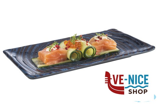 LOOPS-VASSOIO SUSHI IN MELAMINA BLU DECORATA CM 23,5X13,5 H 1,5 85025