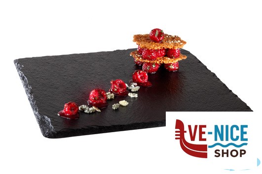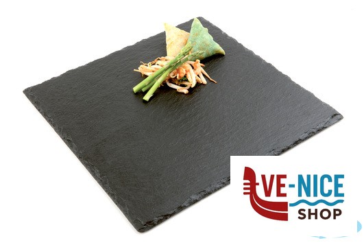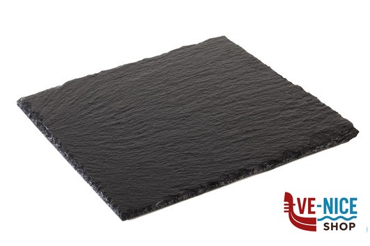 PIATTO QUADRATO IN ARDESIA NATURALE CM 25X25 SPESSORE 6-9 MM CON PIEDINI ANTISCIVOLO 00994