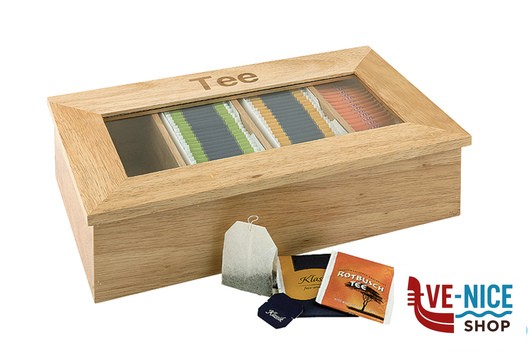 SCATOLA BORTABUSTINE THE CM.33,5X20 H.9 IN LEGNO CON FINESTRA TRASPARENTE CON INCISIONE -TEE- 4 SCOMAPRTI PER CIRCA 30 BUSTINE CAD. 11575