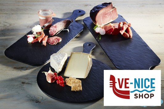 SLATE-ROCK-VASSOIO RETTANGOLARE CON MANICO CM 48X20 H.1,5 IN MELAMINA NERA EFFETTO ARDESIA 84259