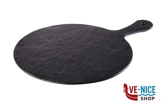SLATE-ROCK-VASSOIO TONDO CON MANICO CM 30 H.1,5 IN MELAMINA NERA EFFETTO ARDESIA 84257