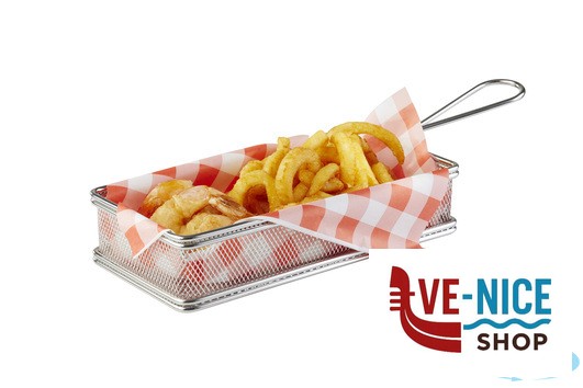 SNACKHOLDER-MINI CESTINO FRITTI RETTANGOLARE BASSO CM.21,5X10,5XH.4,5 INOX 40610