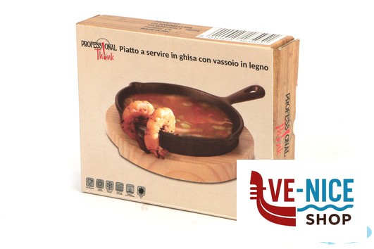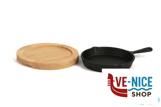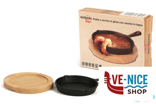 accessori da portata HORECA PROFESSIONAL-GHISA CASSERUOLA 1 MANICO TONDA CM.14 CON BASE LEGNO YY079-7 IMPORT TAVOLA PROFESSIONAL