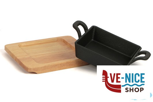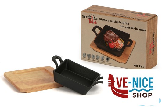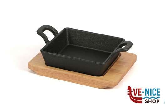HORECA PROFESSIONAL-GHISA CASSERUOLA QUADRA CM.12,5X12,5 CON BASE LEGNO YY085-1