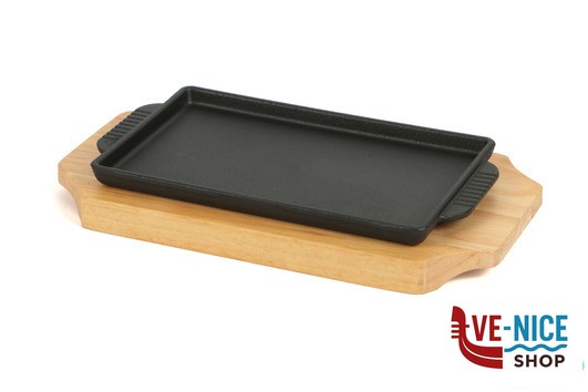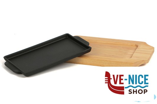 HORECA PROFESSIONAL-GHISA PIASTRA CM.19X12 CON BASE LEGNO YY2056