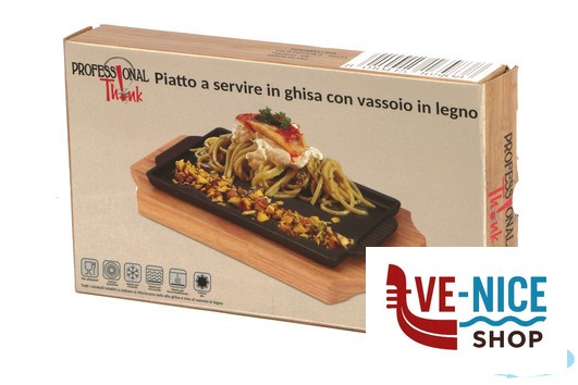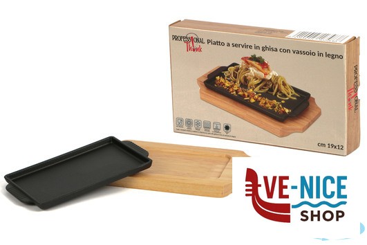 accessori da portata HORECA PROFESSIONAL-GHISA PIASTRA CM.19X12 CON BASE LEGNO YY2056 IMPORT TAVOLA PROFESSIONAL