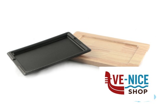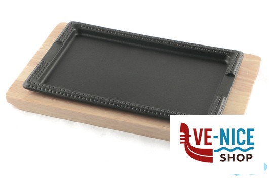 HORECA PROFESSIONAL-GHISA PIASTRA CM.27X18 CON BASE LEGNO YY2125