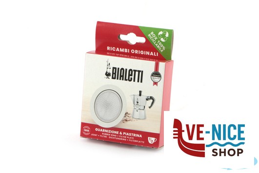 RICAMBIO ORIGINALE BIALETTI, GUARNIZIONE E PIASTRINA IN ALLUMINIO PER CAFFETTIERA MOKINA MADE IN ITALY