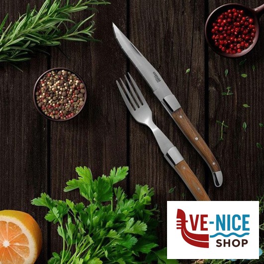 COLTELLO DA BISTECCA CON MANICO IN LEGNO E LAMA MICROSEGHETTATA