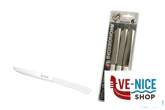DE LUXE-CONFEZIONE 6 COLTELLI BISTECCA-PIZZA LAMA CM 12 BIANCO