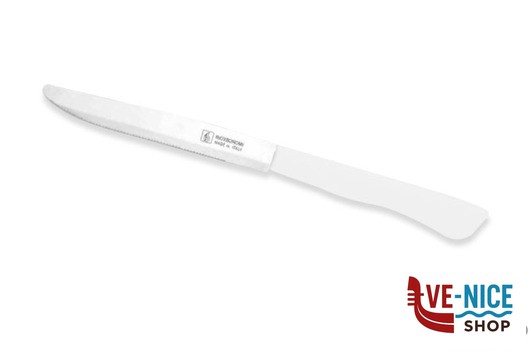 COLTELLO PER BISTECCA O PIZZA CON MANICO IN PLASTICA COLOR BIANCO, DI OTTIMO RAPPORTO PREZZO-QUALIT, LAMA DA 12 CM. E MANICO SPECIALE DI LUNGA DURATA .