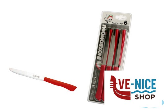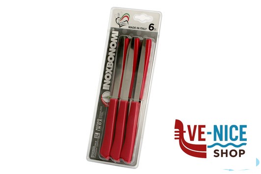 DE LUXE-CONFEZIONE 6 COLTELLI BISTECCA-PIZZA LAMA CM 12 ROSSO