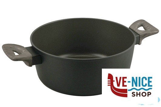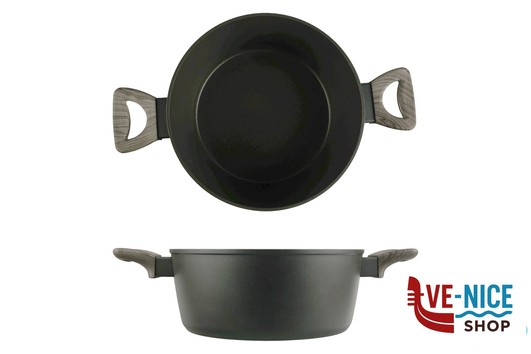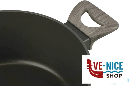 LINEA DI PENTOLAME FORGIATO DI ALTA QUALITA, CORPO IN ALLUMINIO ANTIADERENTE NERO E MANICO CON RIVESTIMENTO SOFTOUCH EFFETTO LEGNO. ANCHE PER COTTURA AD INDUZIONE