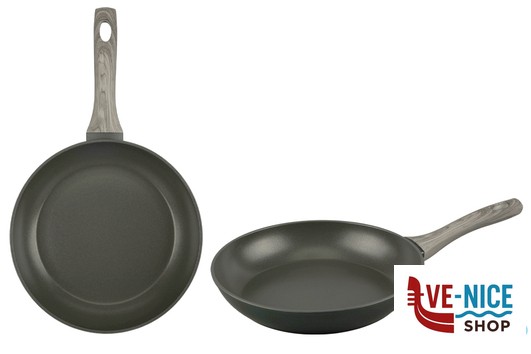 LINEA DI PENTOLAME FORGIATO DI ALTA QUALITA, CORPO IN ALLUMINIO ANTIADERENTE NERO E MANICO CON RIVESTIMENTO SOFTOUCH EFFETTO LEGNO. ANCHE PER COTTURA AD INDUZIONE