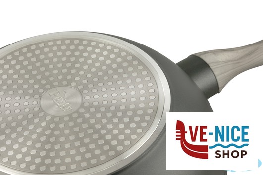 LINEA DI PENTOLAME FORGIATO DI ALTA QUALITA, CORPO IN ALLUMINIO ANTIADERENTE NERO E MANICO CON RIVESTIMENTO SOFTOUCH EFFETTO LEGNO. ANCHE PER COTTURA AD INDUZIONE