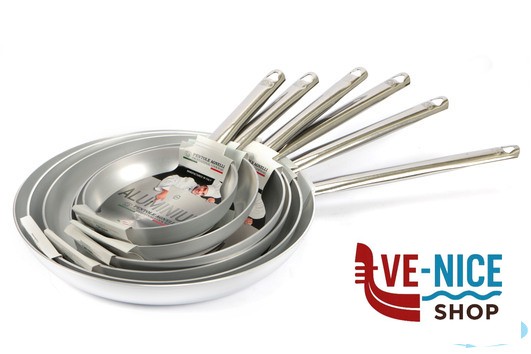 PADELLA SVASATA BASSA IN ALLUMINIO PROFESSIONALE DI SPESSORE 3MM CON MANICO TUBOLARE IN ACCAIO INOX