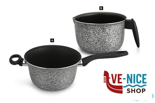 BOLLILATTE ANTIADERENTE DAL COLORE GRIGIO MARMORIZZATO CON MANICO SALDATO ADATTO ALL USO QUOTIDIANO