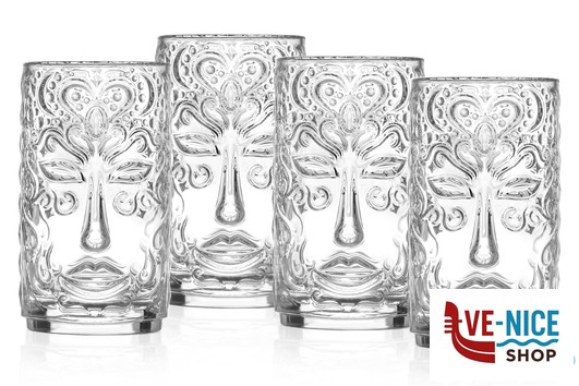 TIKI VENEZIA-CONFEZIONE 4 BICCHIERI FORMA ALTA CL 45 CM 7,6 H 13,6