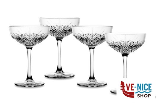 ELEGANTE SET DI 4 CALICI IN VETRO LAVORATO PER CHAMPAGNE