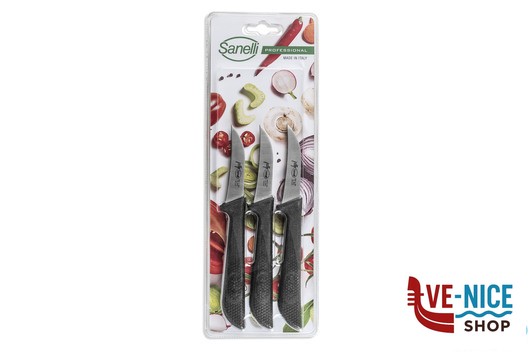 SET TRE COLTELLI CON UNA FORMA SPECIFICA PER LA LAVORAZIONE DI VERDURE IN GENERE
