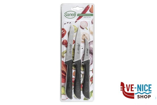 TRIS DI SPELUCCHINI PER LA LAVORAZIONE DELLE VERDURE IN GENERE. MOLTO AFFILATI E RESTINTENTI CON MANICATURA IN POLOPROPILENE ANTISCIVOLO