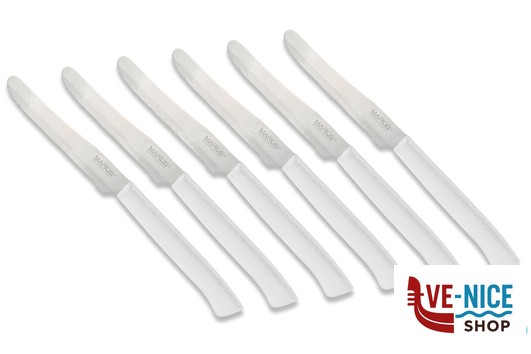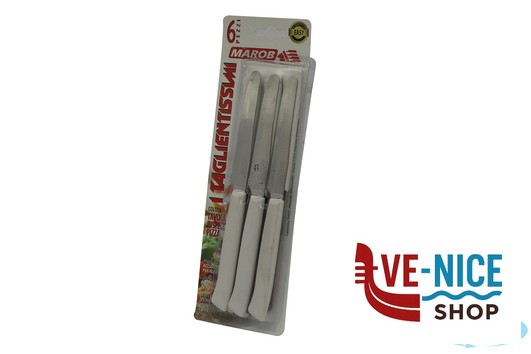 TAGLIENTISSIMI-CONFEZIONE 6 COLTELLI TAVOLA LAMA DENTATA CM 11 MANICO BIANCO