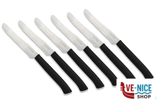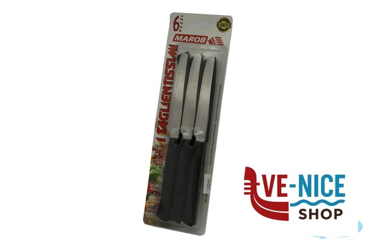 TAGLIENTISSIMI-CONFEZIONE 6 COLTELLI TAVOLA LAMA DENTATA CM 11 MANICO NERO