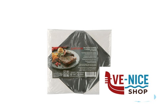 JUSTONE-SET 3 PIATTI ARDESIA QUADRATI CM.14X14 CKPL1414B