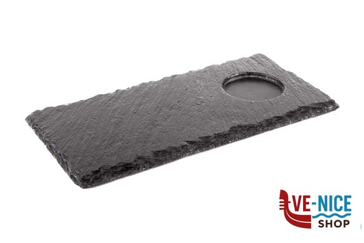 VASSOIO IN ARDESIA NATURALE CM 25X12 SPESSORE 6-9 MM CON 1 FORO DAL DIAMETRO DI 6 CM 00986