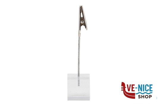 SUPPORTO BASE PORTA TAG A CUBO IN ACRILICO TRASPARENTE CON CLIP IN METALLO, 6 PZ. TAG NON INCLUSA TAG-HLD-AC