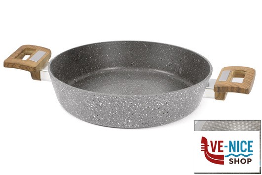 LINEA DI PENTOLAME ANTIADERENTE DI ALTA QUALITA, CORPO EFFETTO GRANITO E MANICO IN BACHELITE CON RIVESTIMENTO SOFTOUCH EFFETTO LEGNO ANCHE INDUZIONE