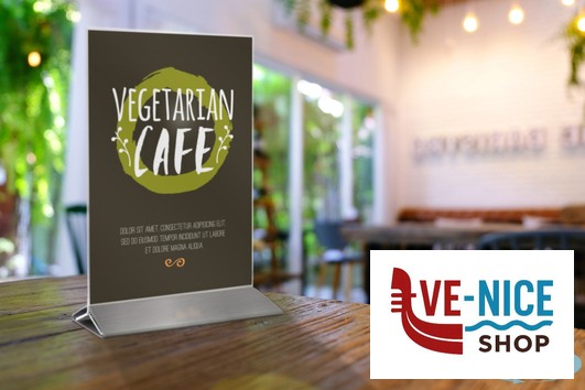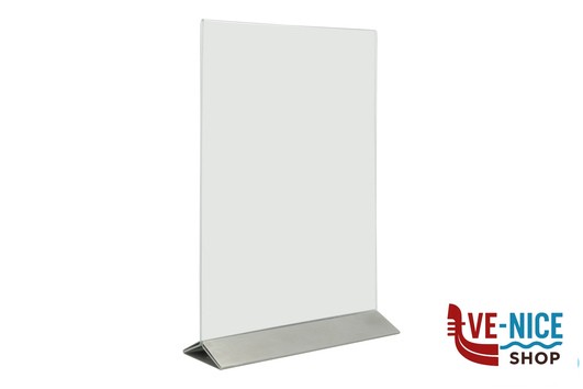 PORTA POSTER DA TAVOLA IN ACRILICO UTILIZZABILE SU DUE LATI, FACILE DA PULIRE E CON BASE IN ACCIAIO INOSSIDABILE.