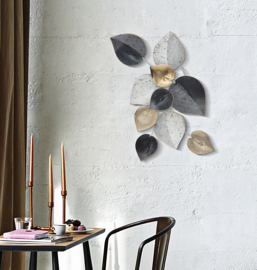 descrizione : GLAMIRONMULTICOLORPANNELLO IN METALLO CON FOGLIE. LA NATURA INCONTRA L’ARTE. I PANNELLI 3D SONO IL NUOVO TREND PER DECORARE LE PARETI. IL METALLO SI DECLINA IN FORME GEOMETRICHE, VEGETALI O ANIMALI CHE CONFERISCONO UN’ALLURE GLAMOUR E SORPENDENTE AD OGNI AMBIENTE