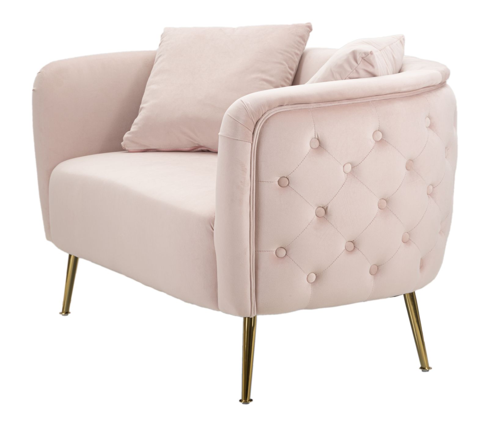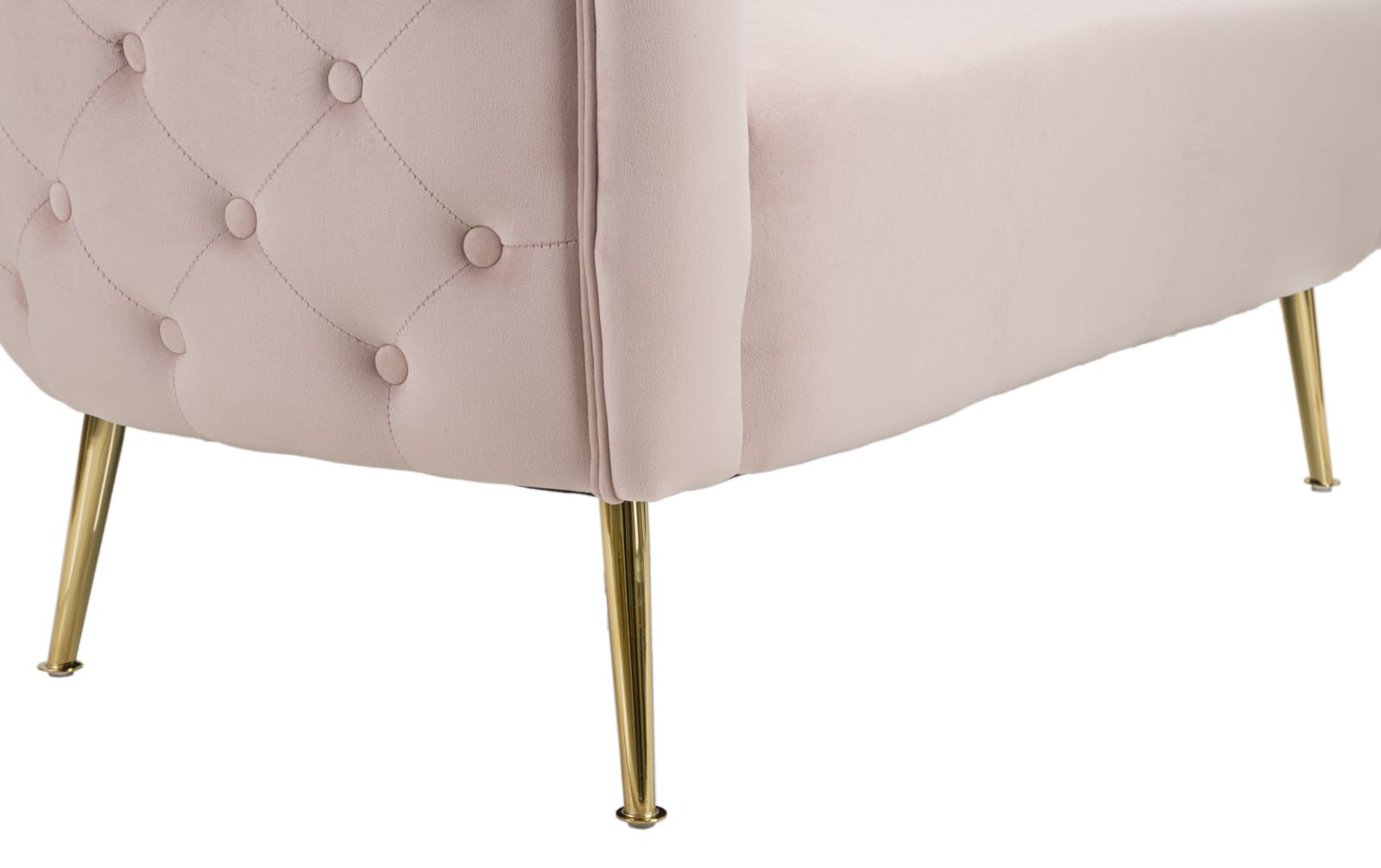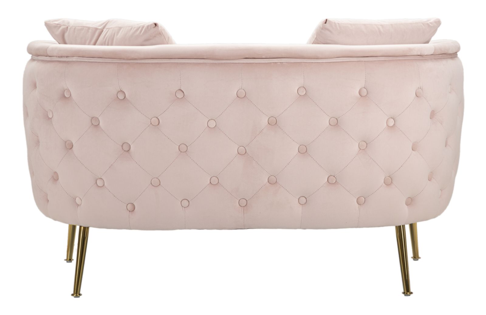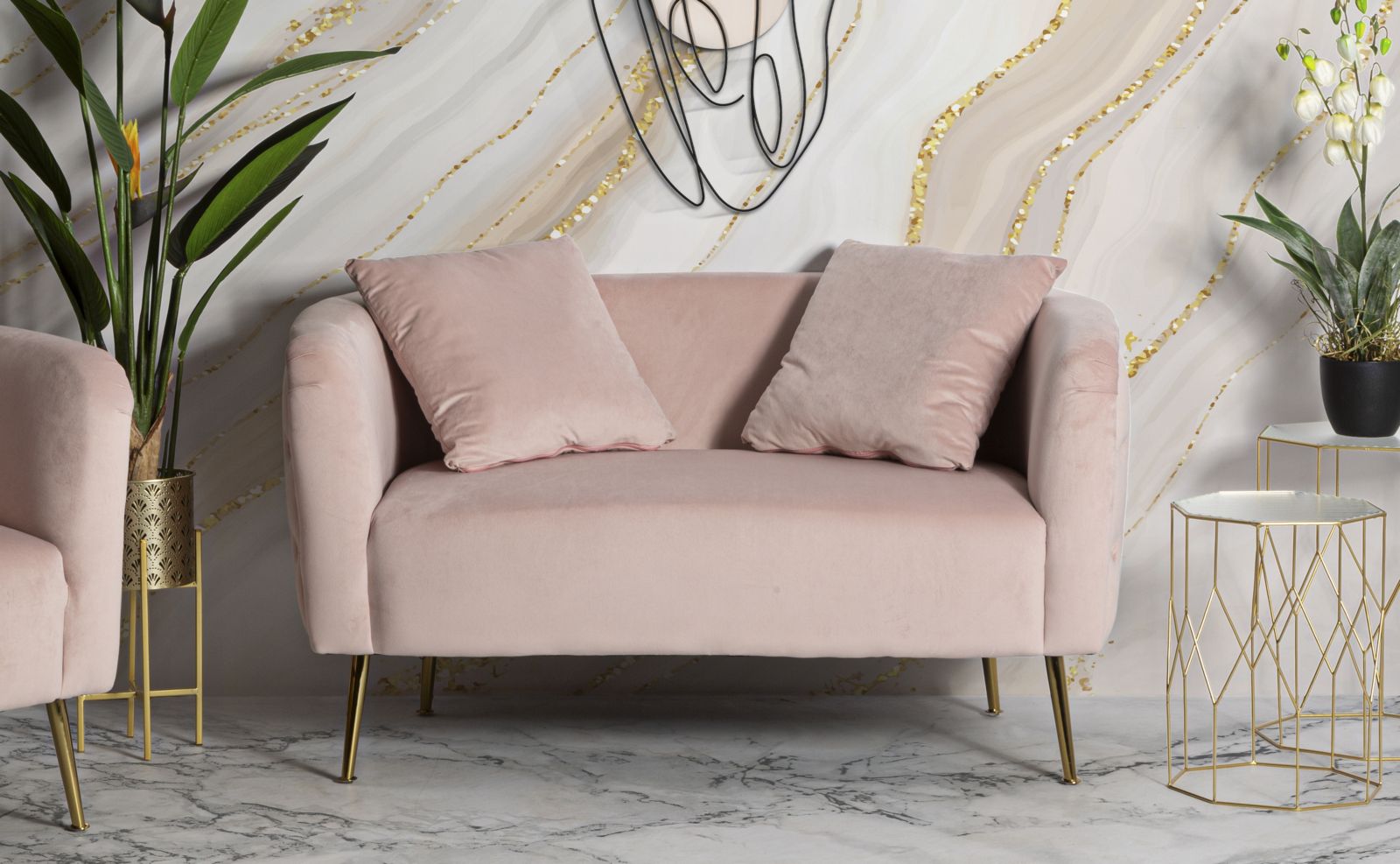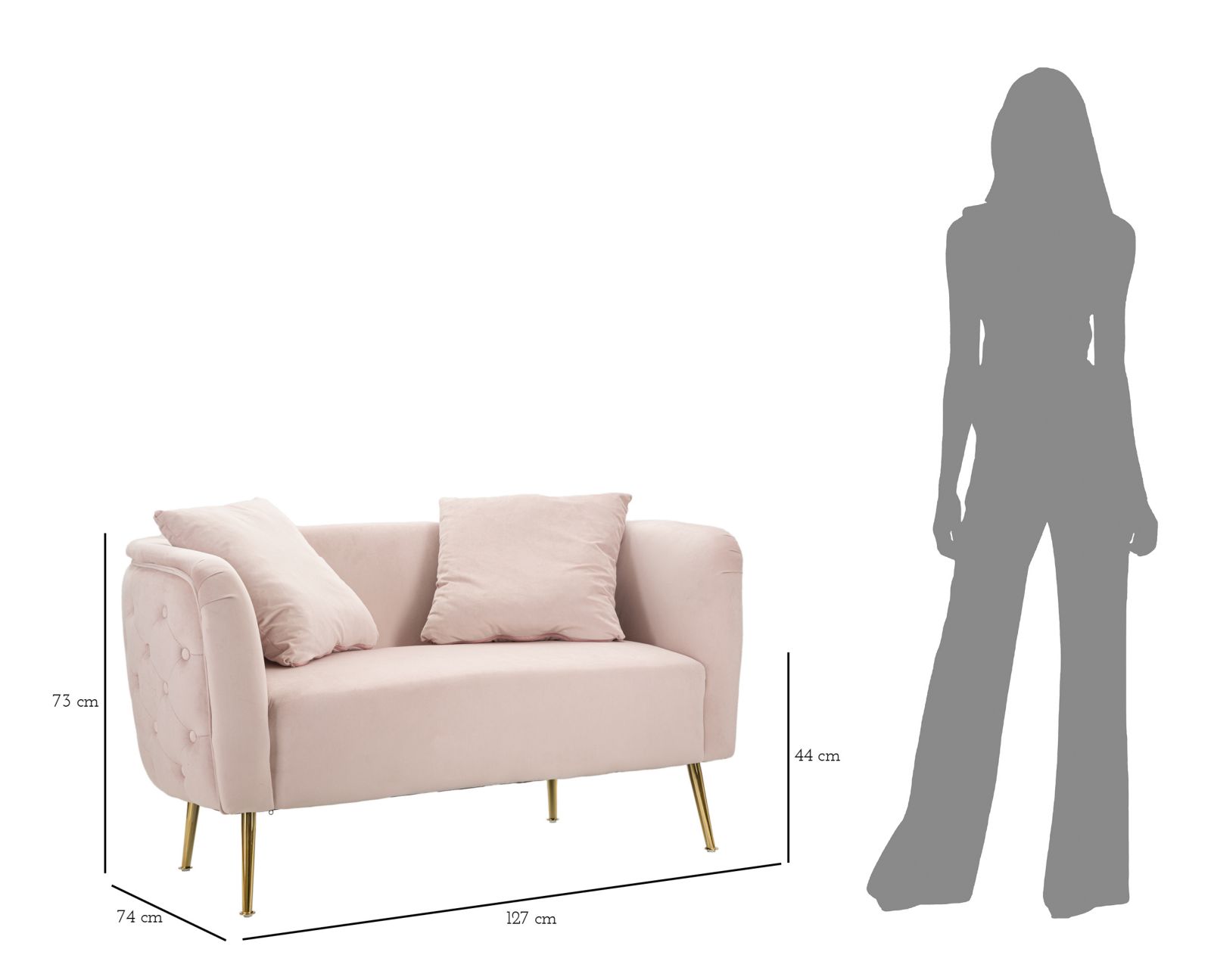 GLAMDIVANETTO BUCAREST ROSA CM 127X74X73PLAYWOOD, SPONGE, FABRIC AND METALPINKDivanetto 2 posti in tessuto imbottito rosa con comodi braccioli. Il colore del tessuto insieme all’eleganza delle gambe dorate donano un tocco di classe ad ogni ambiente. Completo di 2 cuscini.