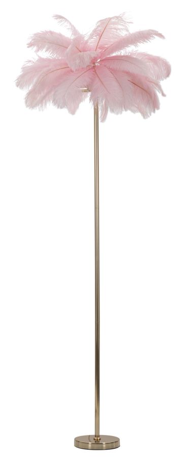 descrizione : GLAMIRON AND PLASTICPINK AND GOLDPIANTANA IN METALLO DORATO CON 3 PUNTI LUCE E PARALUME COMPOSTO DA PIUME ROSA.220V50HZ40 WATT MAXE143NO