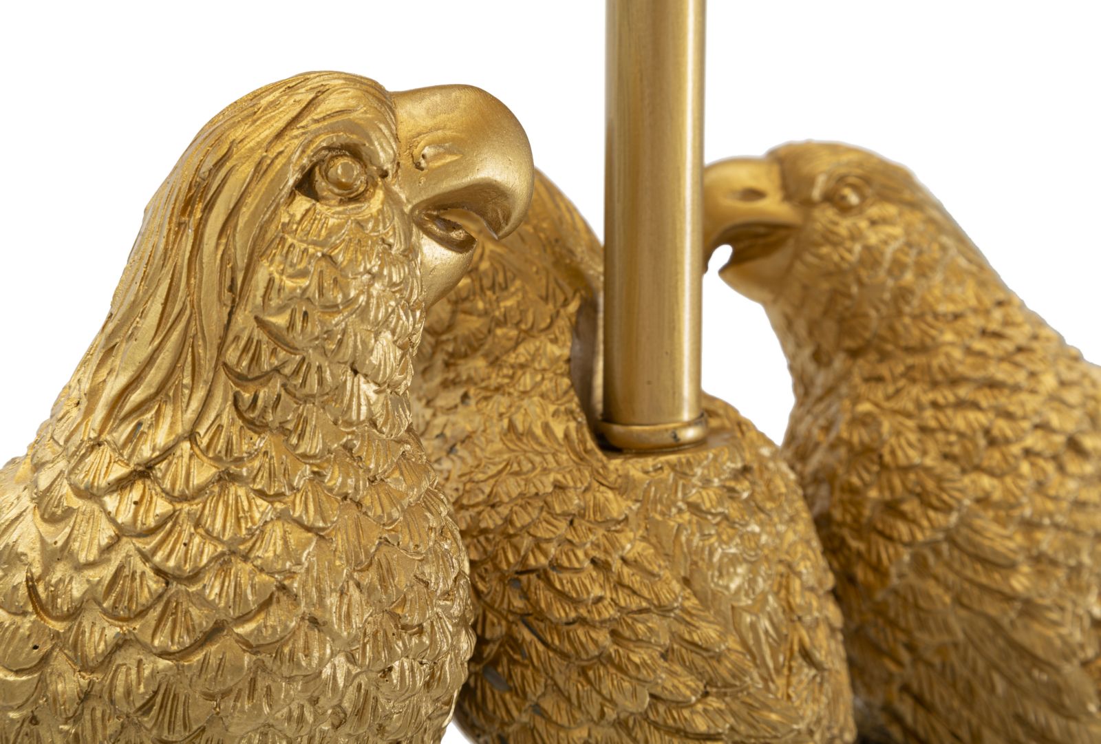 descrizione : GLAMIRON, PVC AND POLYESTERBLACK AND GOLDPIANTANA IN METALLO DORATO CON PARALUME IN TESSUTO NERO. L’ASTA È DECORATA CON DEI PAPAGALLI. L’UNIONE TRA L’ORO E IL NERO CREANO UN PERFETTO CONTRASTO ADATTO AD OGNI AMBIENTE.220 V50 HZ40 WATT MAXE271NO