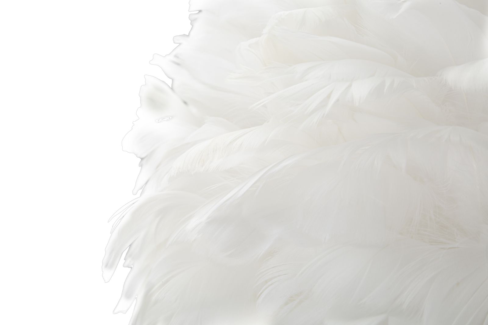 descrizione : GLAMIRON AND FABRICGOLD AND WHITEPIANTANA IN METALLO DORATO CON ELEGANTE DECORAZIONE MORBIDA E SINUOSA COMPLETA DI PARALUME COMPOSTO DA PIUME.220V50HZ40 WATT MAXE271NOshade size cm Ø 31X50