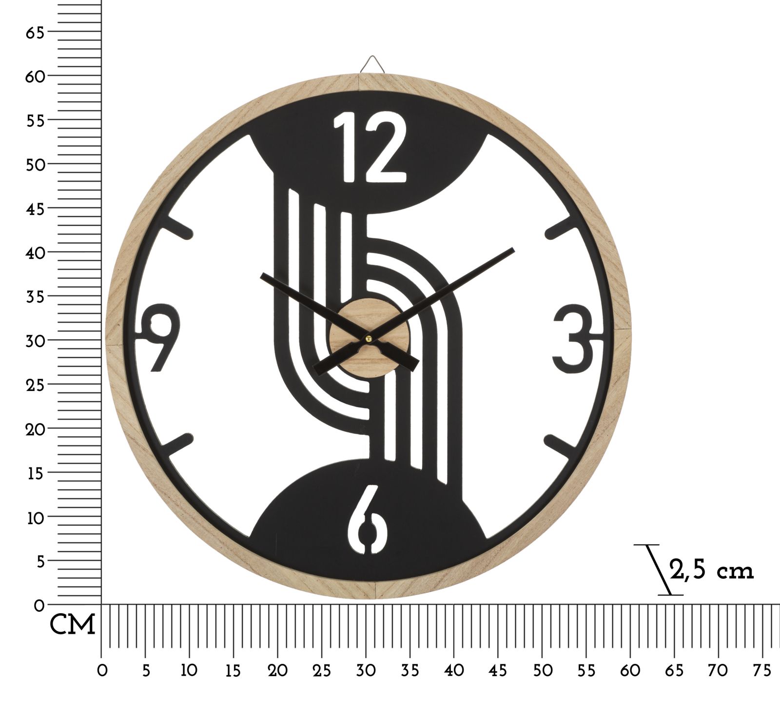 descrizione : MODERNIRON AND MDFBLACK AND BROWNOROLOGIO ROTONDO DA PARETE IN METALLO E LEGNO COMPOSTO DA LINEE ARROTONDATE E REGOLARI. FUNZIONAMENTO CON BATTERIA AA NON INCLUSA.