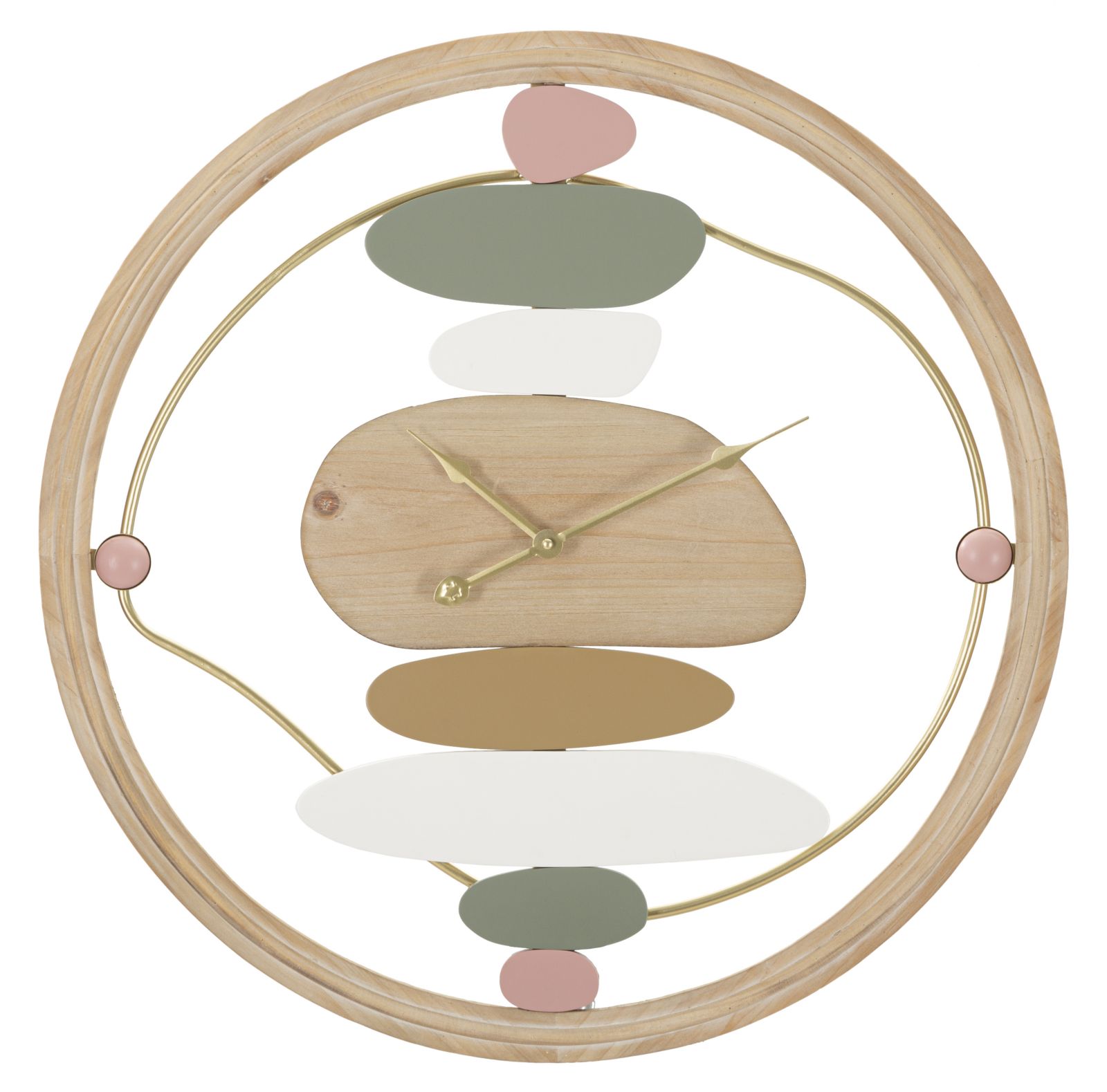 descrizione : MODERNIRON AND MDFMULTICOLOROROLOGIO ROTONDO DA PARETE IN METALLO E LEGNO IMPREZIOSITO DA ELEGANTI DECORAZIONI ASTRATTE DALLE LINEE ARROTONDATE DAI TONI PASTELLO. FUNZIONAMENTO CON BATTERIA AA NON INCLUSA.