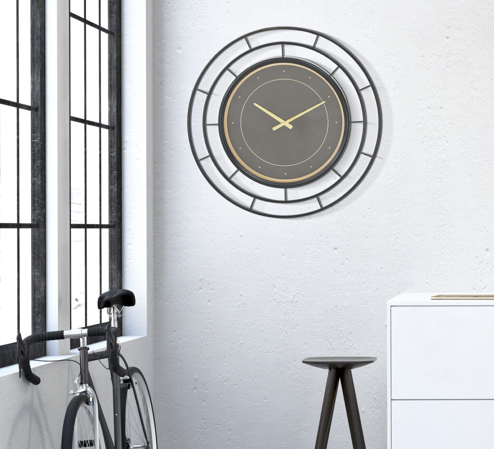 descrizione : GLAMIRON,MDF AND GLASSBLACKELEGANTE OROLOGIO ROTONDO DA PARETE DAL DESIGN SEMPLICE MA SOFISTICATO. L’ELEGANZA DEL NERO E DELL’ORO SI FONDONO PER CREARE UNA COMBINAZIONE DI CLASSE.1XAA BATTERY NOT INCLUDED