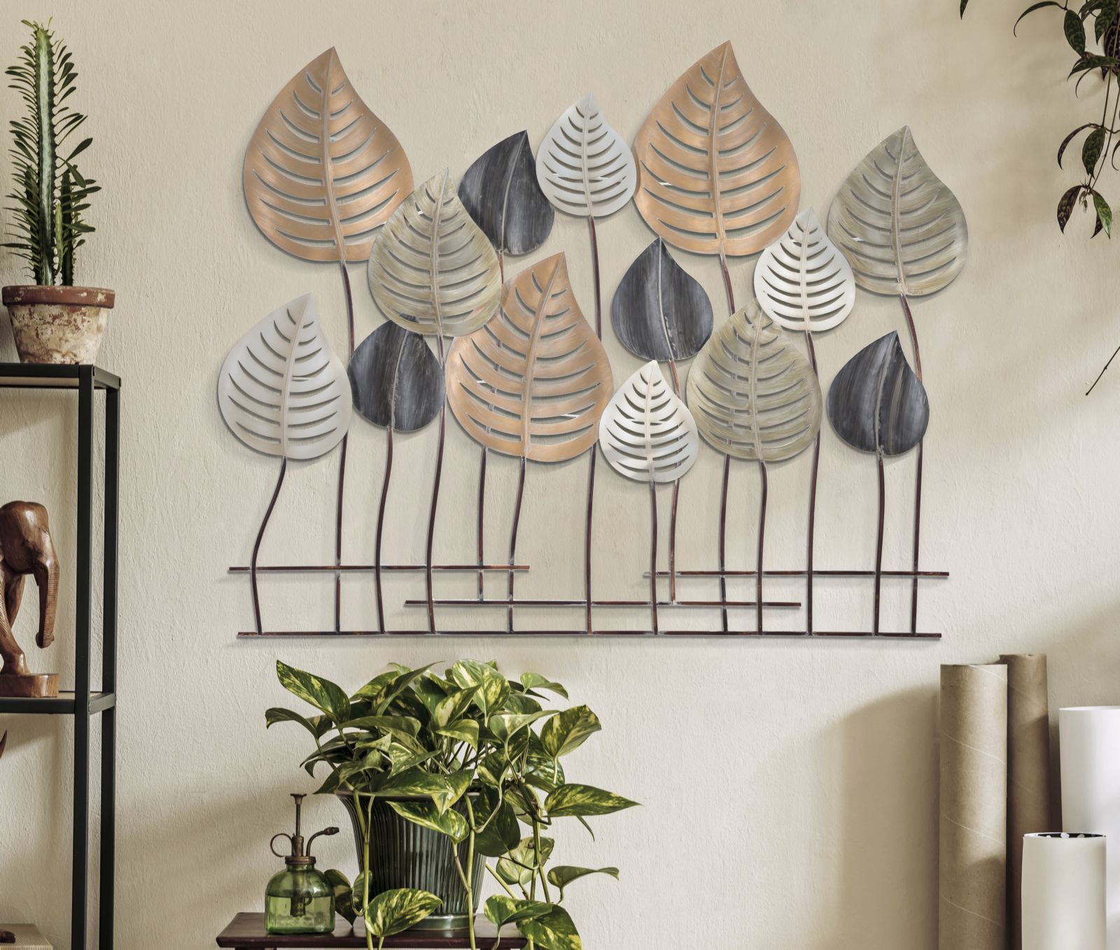 descrizione : GLAMIRONMULTICOLORPANNELLO DECORATIVO 3D IN METALLO DAL DESIGN CHE RICHIAMA LE FOGLIE E LA NATURA. UN TOCCO ESOTICO PER PERSONALIZZARE OGNI AMBIENTE.