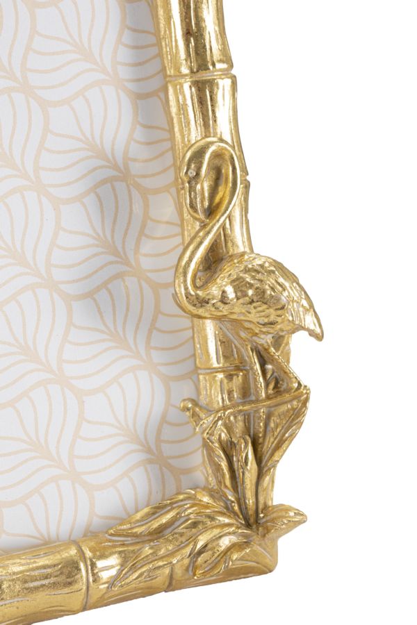 descrizione : GLAMPOLYRESIN AND GLASSGOLDCORNICE RETTANGOLARE DA APPOGGIO IN RESINA DAL DESIGN CHE RICORDA LE CANNE DI BAMBOO E IMPROZIOSITA DA UN FIORE E UN FENICOTTERO. DIMENSIONI FOTO CM 20X25.INSIDE SIZES CM 20X25