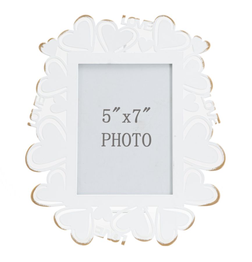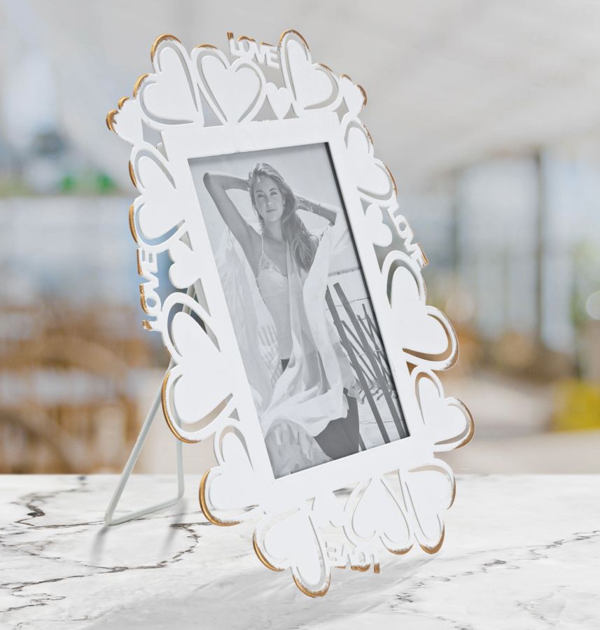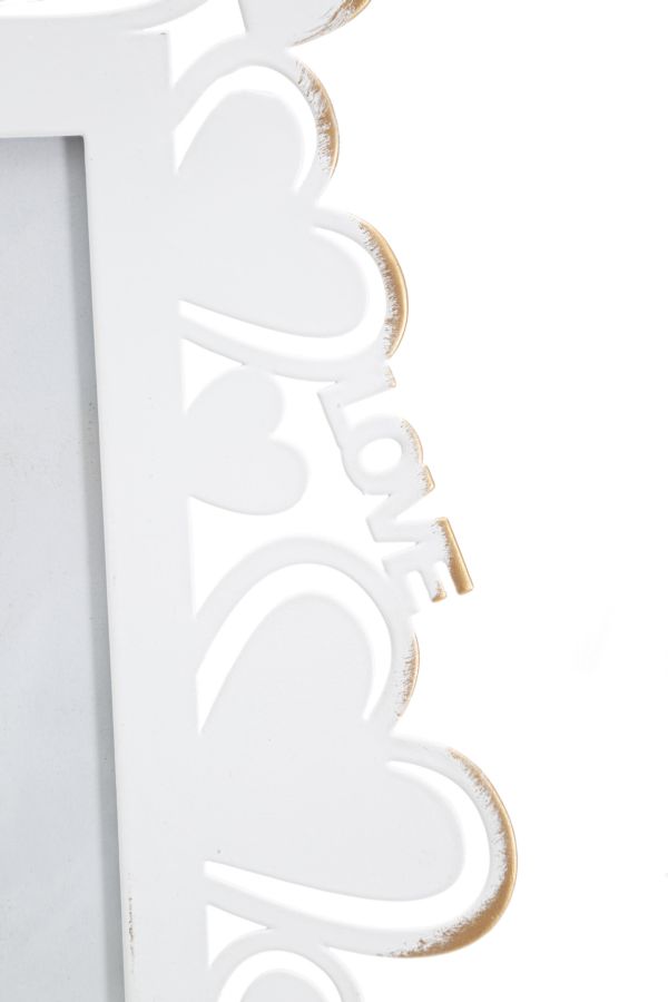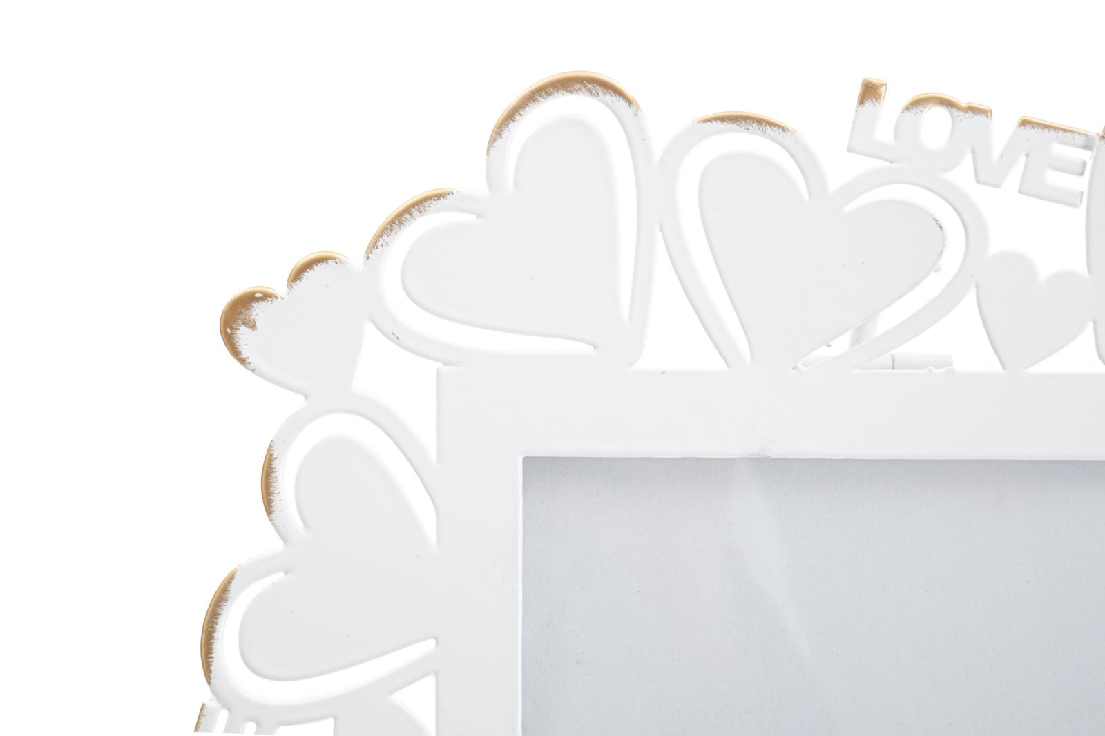 descrizione : GLAMIRON AND GLASSWHITE AND GOLDELEGANTE CORNICE PORTAFOTO IN METALLO BIANCO CON INTARSI A FORMA DI CUORE CHE DONANO UN TOCCO DI LEGGEREZZA E AMORE AD OGNI AMBIENTE.inside size cm 12,5×17,5