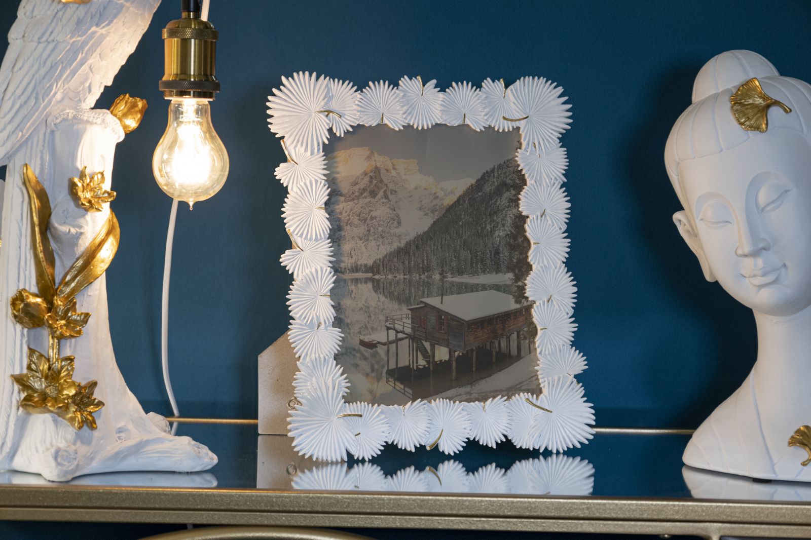descrizione : GLAMPOLYRESIN AND GLASSWHITECORNICE RETTANGOLARE DA APPOGGIO IN RESINA REALIZZATA DA UN INSIEME DI FOGLIE. PUÒ ESSERE POSIZIONATA SIA IN ORIZZONTALE CHE IN VERTICALE. DIMENSIONI FOTO CM 20X25.INSIDE SIZES CM 20X25