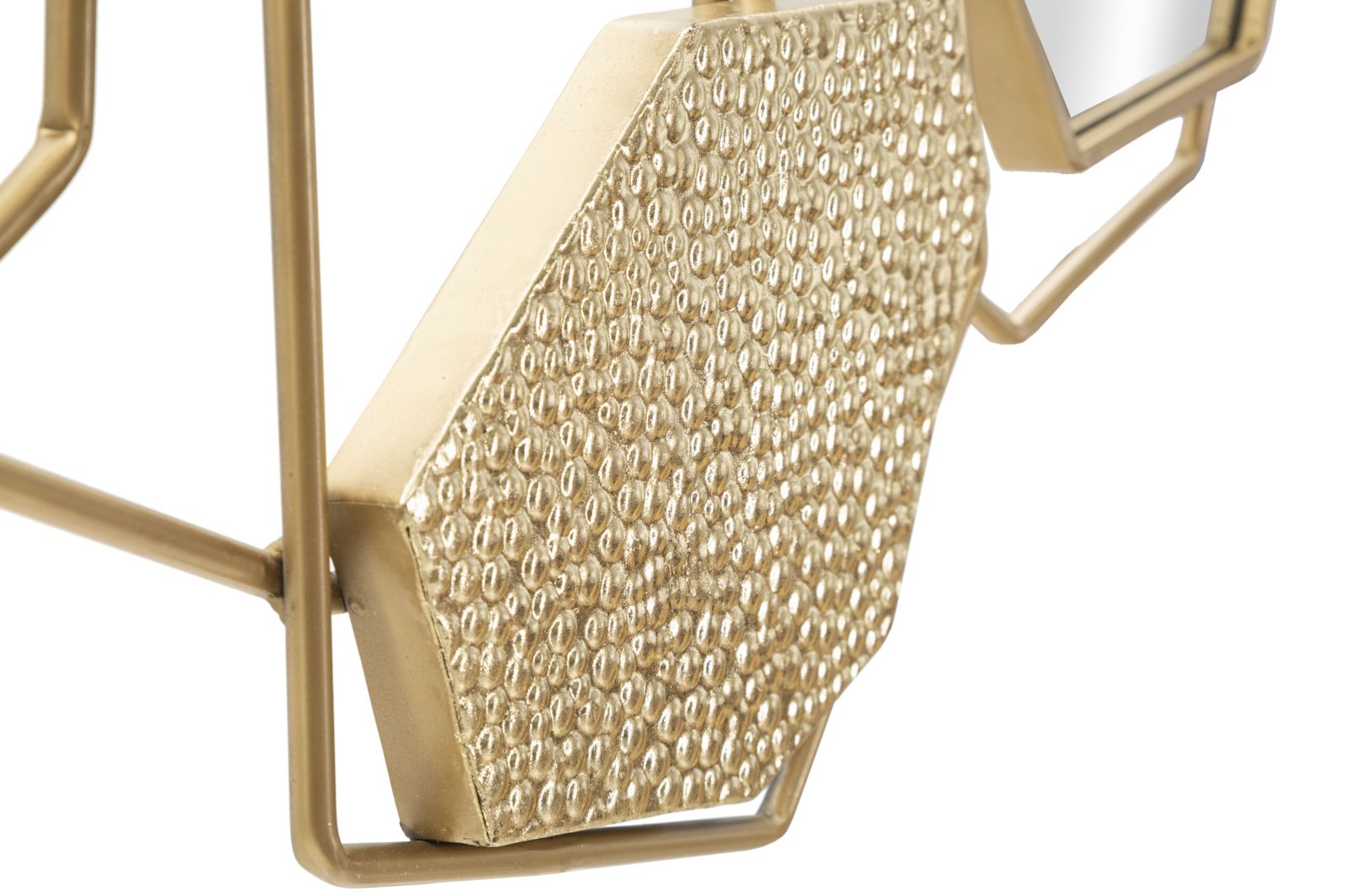 descrizione : GLAMIRON,MDF AND MIRRORGOLDCOMPOSIZIONE DA PARETE CON SPECCHI DAL DESIGN GEOMETRICO CHE RICHIAMA IL CUBISMO. UN COMPLEMENTO CHE DONA LUMINOSITÀ GRAZIE AL METALLO DORATO ED ELEGANZA.*mirror sizes cm 27×24 – 25×26